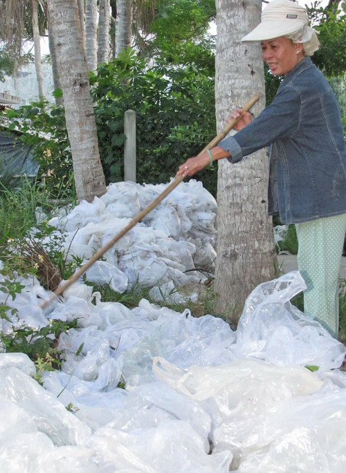 Không chỉ cảng cá, các cơ sở kinh doanh hải sản như của bác Luyến, bác Cả ở Thuận An dần dà cũng chuyên cung cấp, gửi tặng bao bì thải loại cho bà Đối. “Tui thấy rác là ham lắm, có khi nhặt đến 1-2 giờ chiều vẫn chưa nghỉ. Còn có thêm các bác dưới đó giúp nữa. Hễ mấy bác điện thoại gọi về cho rác là tui mừng chạy đi ngay. Có khi họ gom cho cả mấy tạ bao bì. Những lúc rác theo tàu cá vô cảng quá nhiều, tui gọi điện cho mấy đứa con chạy về phụ giúp. Bọn nó quen rồi, cứ nghe gọi điện lên là biết mẹ nhờ nhặt rác. Mình không nhặt, lỡ người ta đốt hoặc đẩy ra sông ra biển thì ô nhiễm độc hại, tội lắm”.