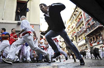 Người tham dự mặc quần áo trắng, quấn một khăn đỏ ở thắt lưng và buộc một khăn vuông nhỏ ở cổ trước khi chật vật chạy qua những con đường hẹp, ngoằn nghèo và trải sỏi cuội để thoát khỏi các chú con bò đực đang rượt đuổi ngay phía sau.