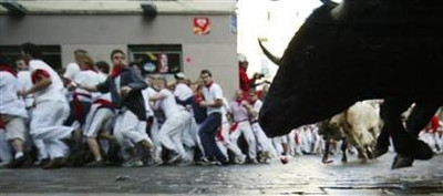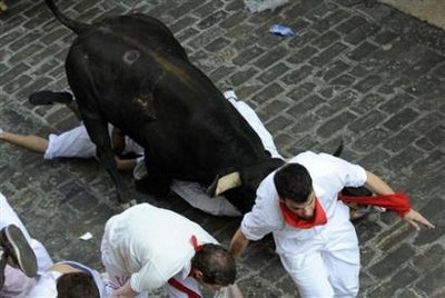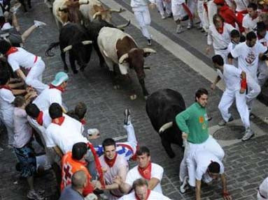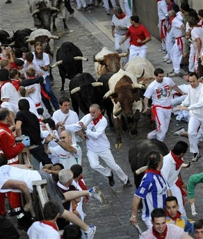Sau đây là một số cảnh những chú bò đực đang rượt đuổi những người tham gia cuộc chạy ngày hôm qua tại Pamplona.