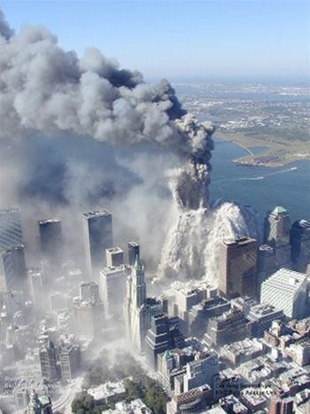 Nhóm không tặc lái hai phi cơ lao thẳng vào Toà Tháp Đôi của Trung tâm Thương mại Thế giới tại phố Manhattan, thuộc New York (Mỹ).