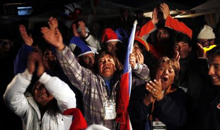 Những nụ cười, tiếng vỗ tay vỡ òa khi thợ mỏ Florencio Avalos, 31 tuổi, trở lại mặt đất sau 68 ngày. Khoang cứu hộ Phoenix (Phượng Hoàng) mất khoảng 16 phút để đưa Avalos từ hầm mỏ lên mặt đất.