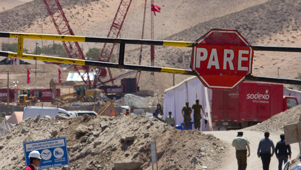 Một hàng rào bảo vệ được lập lên, không cho mọi người tiếp cận khu mỏ San José, nơi đang thực hiện cuộc giải cứu, ở phía Bắc Chile.