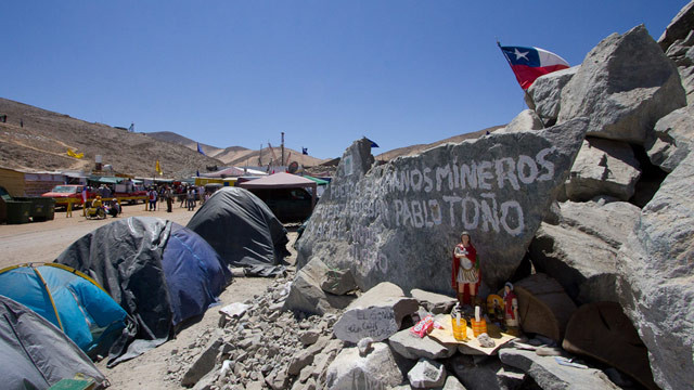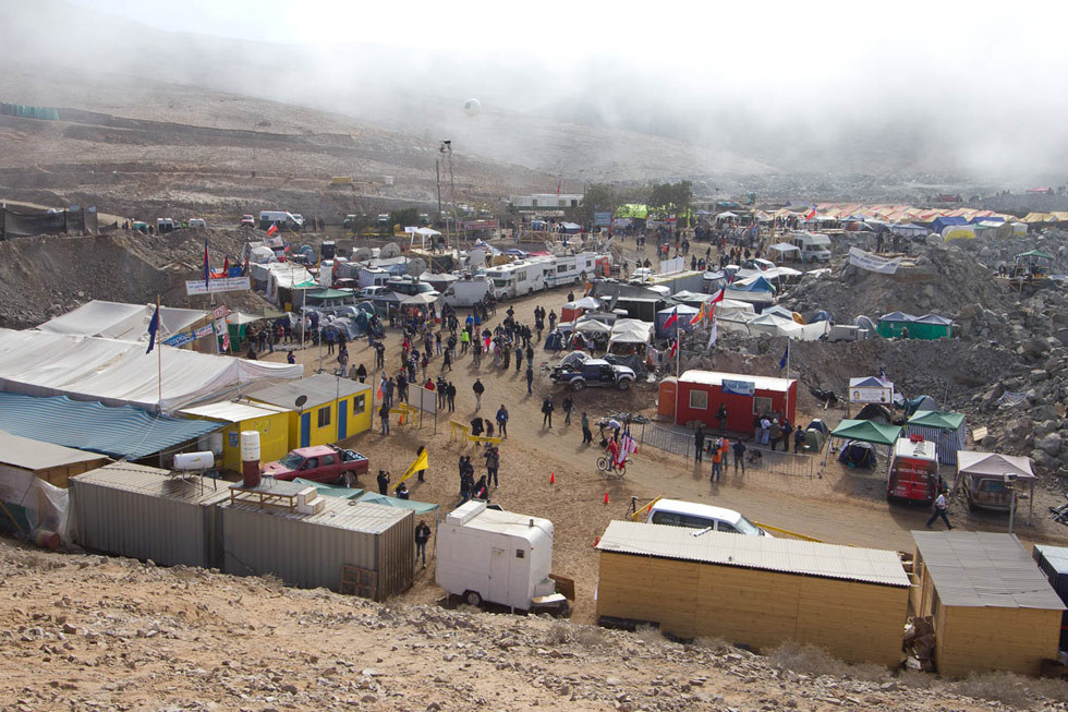 Nhiều lán trại được dựng lên ven khu San Jose để túc trực khi thợ mỏ được giải cứu.