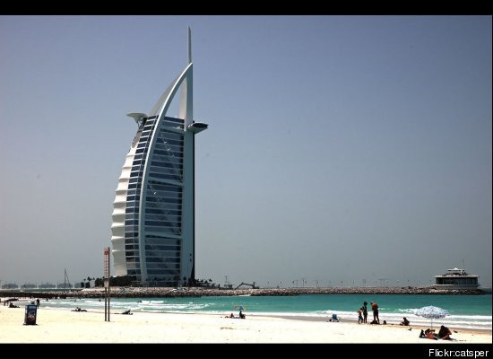 Khách sạn Burj Al-Arab – thành phố Dubai, Các Tiểu vương quốc Ảrập thống nhất. Với hình dáng của một cánh buồm no gió, đây là khách sạn đang hoạt động cao nhất thế giới với chiều cao 321m. Khách sạn này được hoàn thành vào năm 1999.
