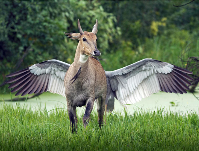 Trông bức ảnh này giống như một sinh vật trong bộ phim thần thoại Harry Potter. Thoạt nhìn, trông giống như một con bò có cánh đang chuẩn bị bay lên. Đây là bức ảnh chụp cảnh con sếu - loài chim cao nhất thế giới đang rượt đuổi con bò. Ảnh do nhiếp ảnh gia Jagdeep Rajput chụp tại vườn quốc gia Keoladeo ở Rajasthan, Ấn Độ.