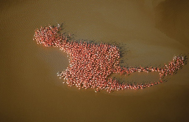 Những con chim hồng hạc tụ tập tạo thành hình 1 con chim hồng hạc! Ảnh do nhiếp ảnh gia Bobby Haas chụp ở Mexico.