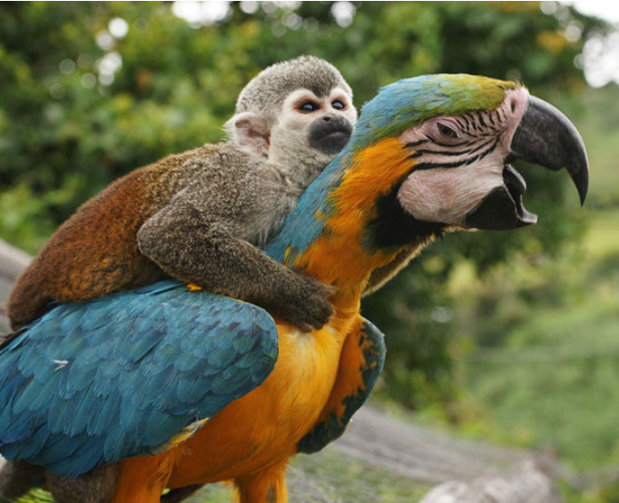 Khỉ bắt vẹt cõng để bay nhảy trên các ngọn cây kiếm ăn.