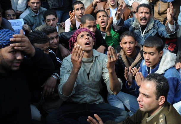 Bất chấp lệnh giới nghiêm của quân đội, hàng nghìn người biểu tình vẫn tụ tập tại quảng trường Tahrir ở trung tâm thủ đô Cairo. Các cuộc biểu tình trên toàn quốc đã bước sang ngày thứ bảy nhưng không có dấu hiệu chấm dứt.