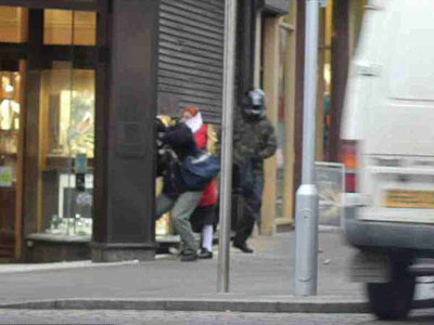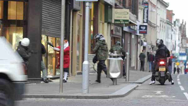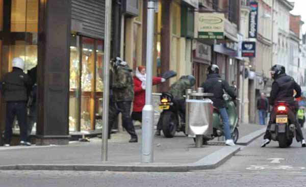 Nhóm cướp đi xe mô tô, đội mũ bảo hiểm che kín mặt, đột nhập vào cửa hiệu trang sức ở Northampton hôm 7 - 2. Cửa hiệu trang sức đang đóng cửa. Một cụ bà khoảng 70 tuổi đi ngang qua và biết được sự việc bèn ra tay làm việc nghĩa, một mình đấu lại năm tên cướp.