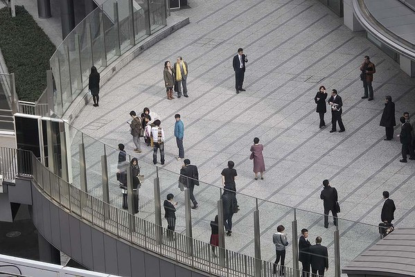 Nhân viên văn phòng làm việc tại quận Shiodome, Tokyo ra khỏi các tòa nhà lánh nạn sau động đất. Ảnh: AP.