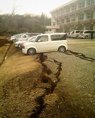 Đường phố thuộc địa bàn tỉnh Fukushima bị nứt nẻ nghiêm trọng. Ảnh: Darren Keitai.