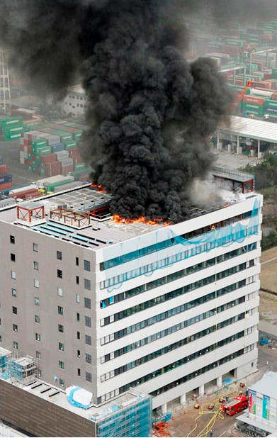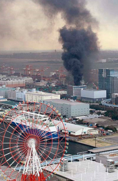 Khói bốc nghi ngút sau trận động đất ở Tokyo. Ảnh: Rex Features.