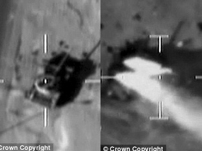 Đây một trong số 70 phi vụ mà máy bay của quân đội Hoàng gia Anh thực hiện kể từ khi Liên Hợp Quốc thiết lập vùng cấm bay ở Libya. Những chiếc máy bay tiêm kích RAF Tornado GR4 đã bắn tên lửa vào 4 xe tăng của lực lượng quân đội Gaddafi, biến chúng thành những quả cầu lửa.