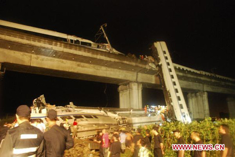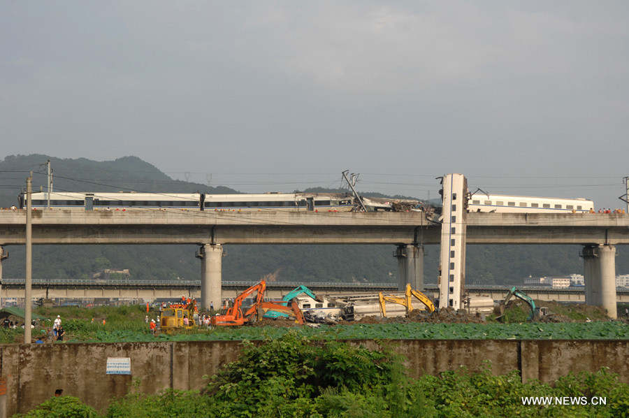 | Hiện trường vụ tai nạn tàu cao tốc thảm khốc tại Chiết Giang, Trung Quốc. |