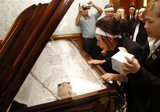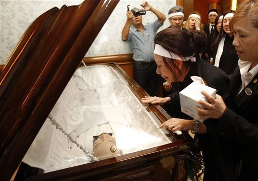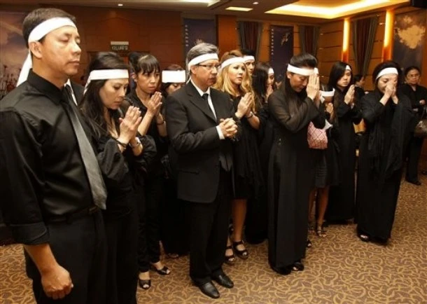 Tang lễ được tổ chức theo nghi thức cấp cao tại một nhà tang lễ Phật giáo ở Malaysia. Toàn bộ người thân trong gia quyến đứng quanh linh cữu người quá cố và cầu nguyện.