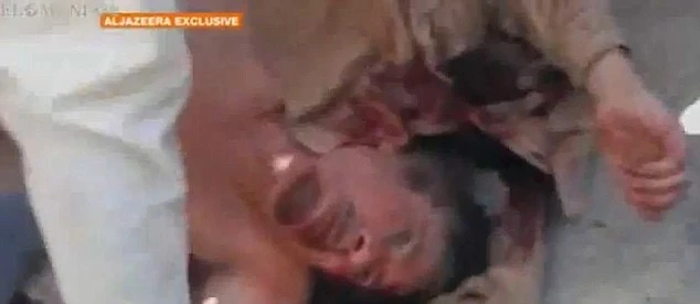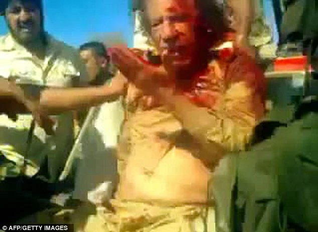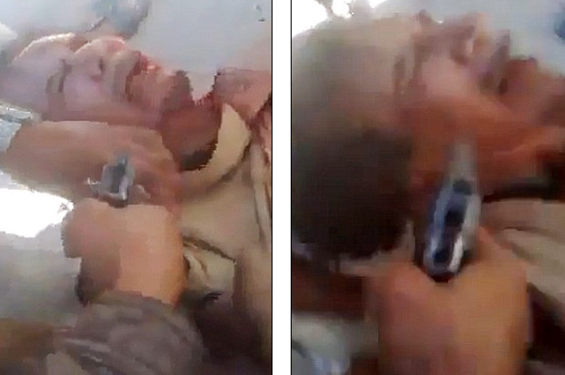 Trong một clip mới được công bố cho thấy, ông Gaddafi vẫn còn sống khi bị lực lượng nổi dậy NTC lôi ra khỏi ống cống. Trong cảnh nhốn nháo, một khẩu súng lục dí vào cổ ông, sau đó tiếng súng vang lên, ông Gaddafi tắt thở không lâu sau đó.