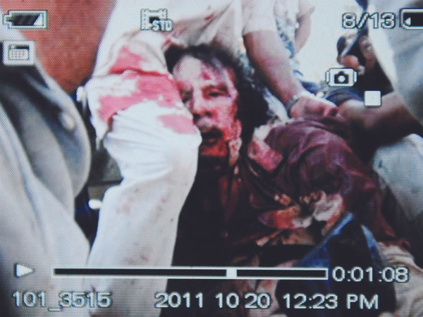 Cựu lãnh đạo Libya Muammar Gaddafi đã hét lớn khi bị quân của chính phủ lâm thời bắt giữ trong một cái hố tại thành phố Sirte. Sau 42 năm cầm quyền, rốt cục nhà lãnh đạo Libya bị bắn chết và bị kéo lê trên đường.