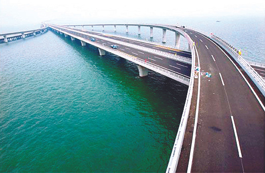 Với chiều dài 42 km, rộng 35 m, chiếc cầu rồng uốn lượn bắc qua vịnh Jiaozhou, Thanh Đảo, tỉnh Sơn Đông, Trung Quốc được ghi nhận là chiếc cầu vượt biển dài nhất thế giới.