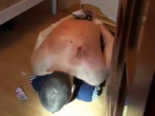Rồi sau đó đoạn video xuất hiện một kẻ được xác định là nghi can Adam Osmayev trong tình trạng ở trần, bị trói giật tay ra sau lưng.