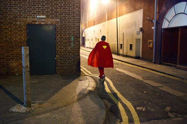 Giải nhì thể loại ảnh Tài liệu: "Siêu nhân" của Cardiff bởi Maciej Dakowicz (Anh). Ảnh chụp một đêm thứ bảy tại Cardiff.