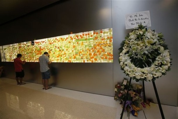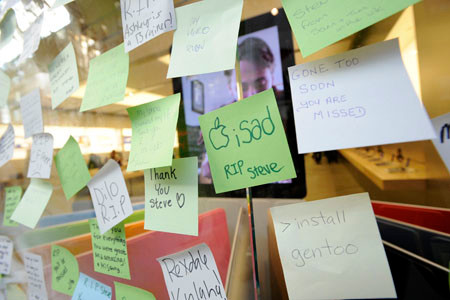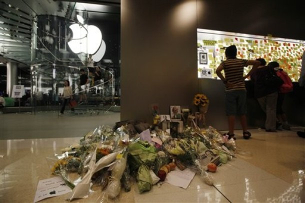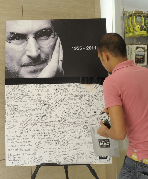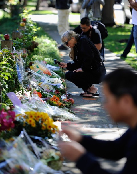 Tại Mỹ, trên đường phố, trước cửa công ty Apple, hay trước các của hiệu bán iPhone lớn... đều có hoa, nến, táo đặt để tưởng niệm. Tất cả nghiêng mình tưởng nhớ và tiễn đưa người đàn ông 56 tuổi về nơi chín suối.