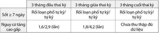 Khảo sát hồ sơ của 96.736 bé lúc khoảng 17 và 32 tuần thai và sáu tháng sau khi sinh, kết quả cho thấy 976 bé được chẩn đoán rối loạn phổ tự kỷ (tỉ lệ 1%); 342 bé bị tự kỷ (tỉ lệ 0,4%). Nếu người mẹ mang thai bị nhiễm cúm thì nguy cơ tăng gấp 2,3 lần, nếu sốt kéo dài nguy cơ tăng cao hơn 3,2 lần.
