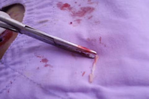 Thời gian gần đây, khối u này ngày một lớn, sưng tấy, căng nhức nên gia đình đã đưa bà Diễm đến bệnh viện để khám lại. Sau khi chuẩn đoán, các bác sĩ đã quyết định thực hiện ca mổ. Thật bất ngờ, giữa khối u của bệnh nhân là một con sán trắng đang cựa quậy, dài khoảng 4cm, đầu to, thân dẹp.
