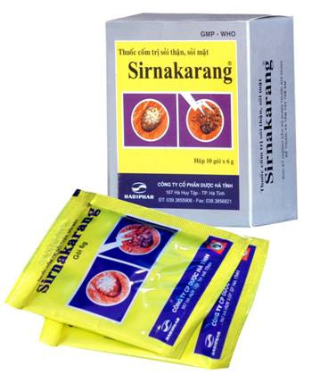 | Để đảm bảo các tiêu chuẩn điều trị trên thì trong các thuốc điều trị sỏi thận hiện nay có thuốc cốm Sirnakarang là đạt hiệu quả cao trong điều trị nhanh, dứt điểm, phòng ngừa tái phát và giúp phục hồi chức năng thận. Thuốc cốm Sirnakarang chứa cao Kim Tiền Thảo có tác dụng làm ngưng sự gia tăng kích thước của hòn sỏi, đồng thời nhanh chóng bào mòn sỏi theo cơ chế “nước chảy đá mòn”. Không những thế, Sirnakarang còn có tác dụng pha loãng dòng nước tiểu, lợi tiểu giúp tống nhanh viên sỏi ra ngoài. Vì vậy Sirnakarang điều trị khỏi bệnh sỏi thận một cách nhanh chóng. Mặt khác, thuốc cốm Sirnakarang còn có tác dụng chống viêm, kháng khuẩn, giảm đau hiệu quả từ đó ngăn ngừa các yếu tố nguy cơ gây ra suy thận giúp phòng tránh biến chứng này. Thuốc cốm Sirnakarang có khả năng cân bằng lượng khoáng chất trong nước tiểu, kiểm soát tốt ngăn không cho các khoáng chất này phát triển vượt mức vì vậy có tác dụng trị bệnh sỏi thận dứt điểm, ngăn ngừa tái phát, không cho hình thành thêm các viên sỏi mới. Đối với những bệnh nhân sỏi thận sau khi phẫu thuật lấy sỏi hay tán sỏi,.. nên dùng thuốc cốm Sirnakarang để phòng ngừa bệnh tái đi tái Đặc biệt, thuốc cốm Sirnakarang có tác dụng phục hồi chức năng thận đã bị tổn thương do sỏi thận gây ra một cách hiệu quả từ đó ngăn chặn biến chứng suy thận và giúp người bệnh nhanh chóng phục hồi sức khỏe. Từ nhiều năm nay, các thầy thuốc đã sử dụng Sirnakarang trong điều trị sỏi cho rất nhiều bệnh nhân. Hầu hết bệnh nhân sử dụng đều cho thấy hiệu quả điều trị rõ rệt sau một thời gian như: hết sỏi, không thấy hình thành sỏi mới, chức năng thận được phục hồi khỏe mạnh... Sỏi thận không khó điều trị vì vậy hãy điều trị đúng cách sớm nhất có thể để hết sỏi và phục hồi chức năng thận, ngăn ngừa biến chứng nguy hiểm suy thận có