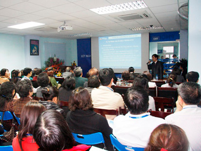 | Hội thảo thu hút sự chú ý lắng nghe và tham gia thảo luận của các Giáo sư và bác sỹ sản khoa. |