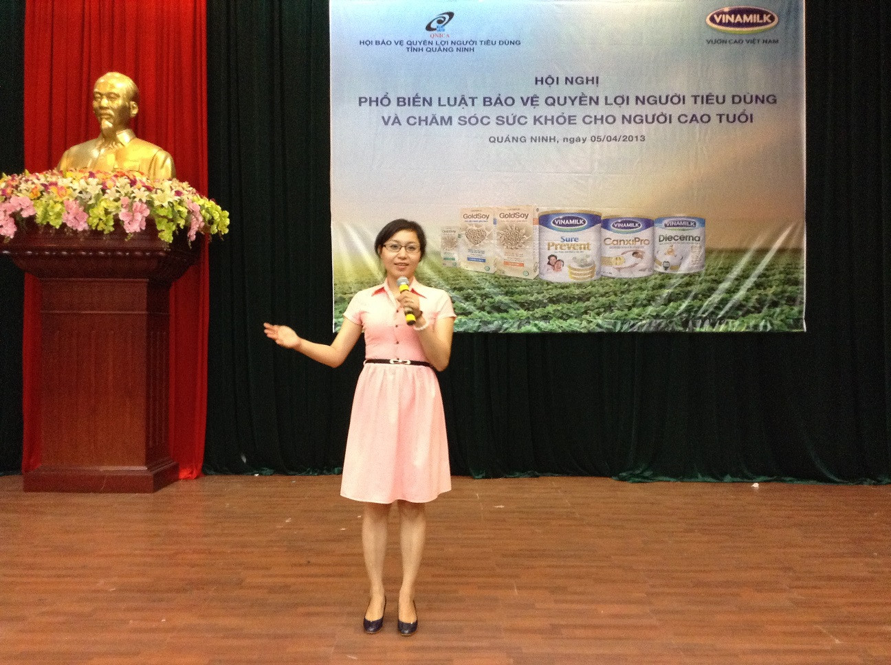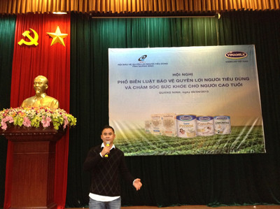 Với mục tiêu là chuyên gia dinh dưỡng chăm sóc sức khỏe toàn diện cho người cao tuổi, trong 2 ngày 4 và 5/4/2013, tại Ninh Bình và Quảng Ninh, Vinamilk tiếp tục phối hợp với Hội Bảo vệ Quyền lợi Người tiêu dùng (BVQLNTD) của hai tỉnh tổ chức hội thảo “Phổ biến Luật Bảo vệ quyền lợi người tiêu dùng và chăm sóc sức khoẻ cho người cao tuổi”.