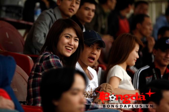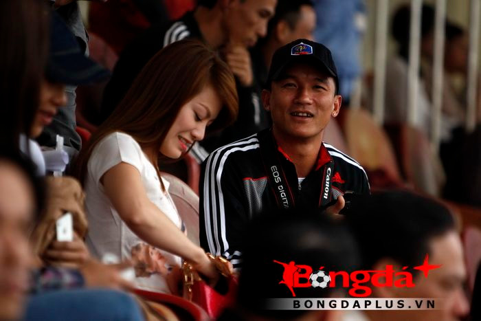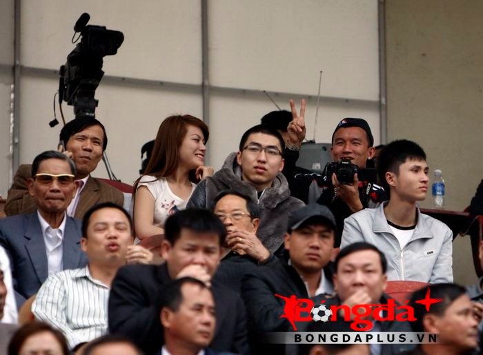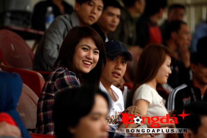 Không hẹn mà gặp 2 tiền vệ Hoàng Danh Ngọc, Mai Tiến Thành vừa bị treo giò của V.NB có dịp dẫn người yêu đến sân Ninh Bình xem đội nhà thi đấu với SLNA.
