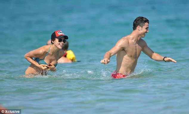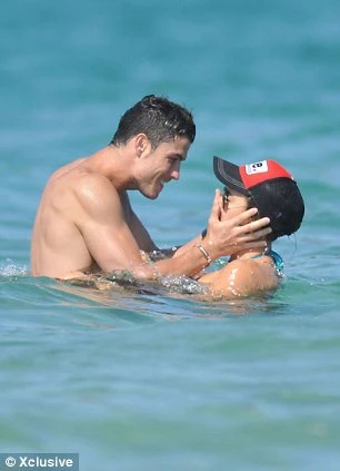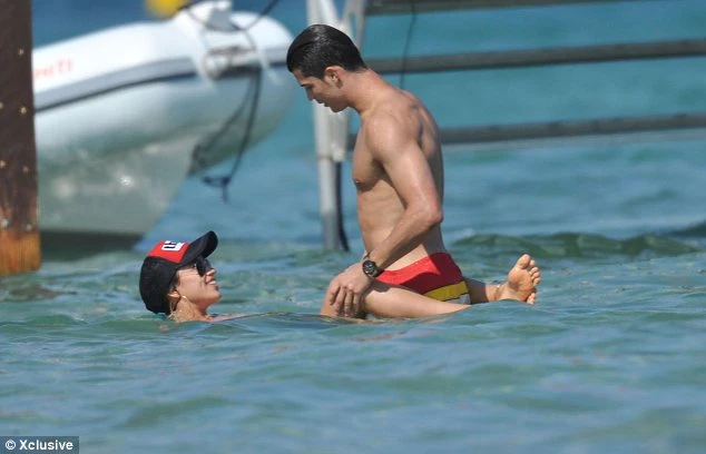 | Irina Shyak và Cristiano Ronaldo vui đùa dưới nước. |