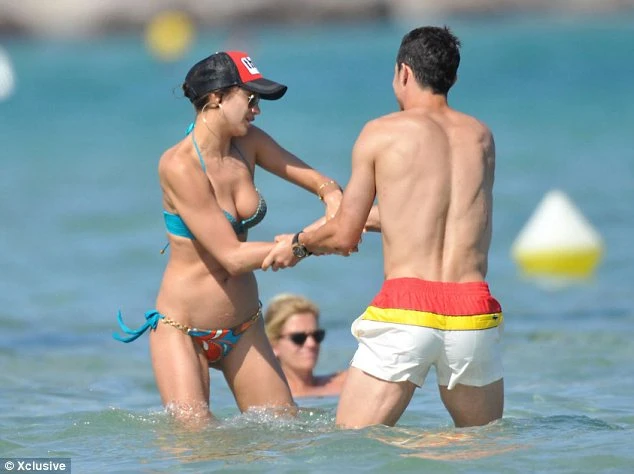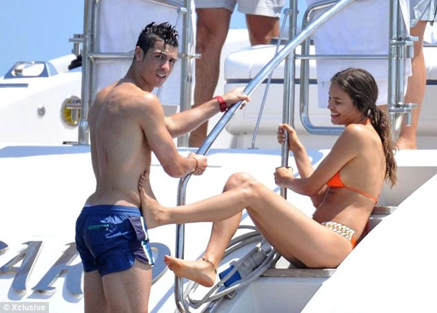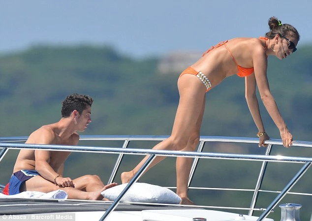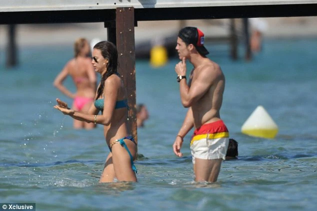 Hình ảnh cô nàng Irina Shyak trong bộ Bikini màu xanh dương, đeo kính râm đã có mặt tại bãi biển nước Pháp bên cạnh anh chàng Ronaldo. Cả hai đã vui đùa dưới nước dưới thời tiết nắng nóng.