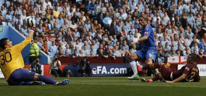 Phút 17, sau một tình huống phản công nhanh, Tevez có bóng và chuyền cho Nasri, nhưng đáng tiếc cầu thủ người Pháp không thể thắng thủ thành Cech.