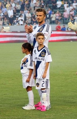 TPO – Nhân dịp sinh nhật lần thứ 10 của cậu con trai Romeo James, David Beckham đã cùng con trai xuất hiện trên sân vận động Home Depot tại Carson, California (Mỹ) thu hút sự chú ý của cả khán đài.