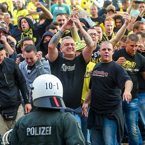 Những Hooligan hung hăng của cả hai bên dùng gạch đá tấn công lẫn nhau. một nhà hàng đã bị phá sập hoàn toàn và trưng dụng làm nơi cố thủ của đám đông hooligan Dortmund trước sự tấn công của các fan đối địch cũng như sự trấn áp của lực lượng an ninh.