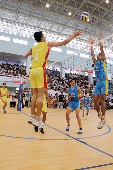 | Trận bán kết 1 nam giữa ĐH Cần Thơ và ĐH TDTT TPHCM. |