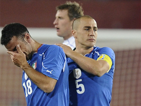 Giống tuyển Pháp trước đó tám năm, nỗ lực bảo vệ ngôi quán quân World Cup của “Binh đoàn Thiên Thanh” kết thúc trong nỗi hổ thẹn khi họ rớt đài ngay từ vòng bảng. Bất chấp những bất ổn trên ghế chỉ đạo trong bốn năm giữa hai vòng chung kết - Donadoni lên thay Lippi nắm đội trong hai năm trước khi Lippo trở lại để chuẩn bị cho World Cup 2010, Italy vẫn được đánh giá cao nhất trong bảng đấu có Paraguay, Slovakia và New Zealand. Nhưng kết quả mà Italy đạt được trên đất Nam Phi chỉ là một thất bại dưới tay Slovakia và hai trận hòa, ra về với vẻn vẹn hai điểm cùng vị trí chót bảng.