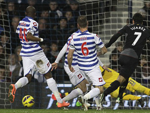 Bị thủng lưới, QPR dồn đội hình lên và từ một pha phản công nhanh, Suarez đã tỏa sáng đem về bàn thắng thứ hai cho Liverool.