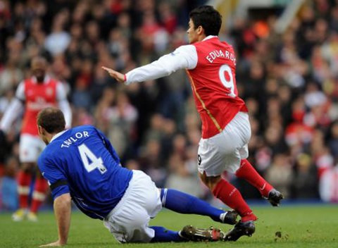 Khoảnh khắc Eduardo gãy gập chân trên sân cỏ vẫn ám ảnh nhiều cổ động viên Arsenal. Tiền đạo người Croatia bị gãy xương mắt cá sau pha chuồi bóng của Martin Taylor bên phía Birmingham. Thậm chí kênh Sky Sport còn yêu cầu không cho chiếu lại pha phạm lỗi bởi hình ảnh có thể gây sốc cho khán giả .