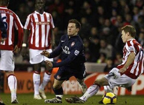 Các cầu thủ Arsenal tiếp tục có mặt trong danh sách các nạn nhân của những pha bóng phạm lỗi tồi tệ. Aaron Ramsey suýt phải đánh mất sự nghiệp đầy hứa hẹn của mình bởi cú tắc bóng mà Ryan Shawcross bên phía Stoke dành tặng. Chiếc chân gãy gập là hình ảnh cuối cùng Ramsey có thể nhận ra trước khi được chuyển thẳng tới bệnh viện .