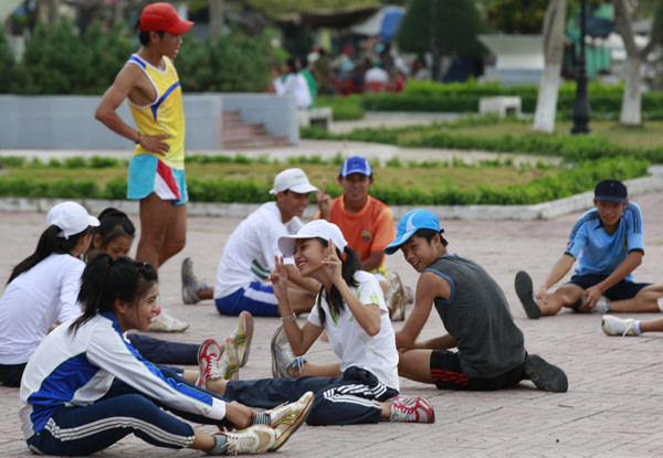 | Các VĐV tập luyện trước giờ khai mạc. |