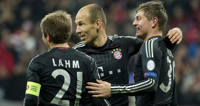 Các bàn thắng của Kroos, Muller và Mario Mandzukic giúp Bayern đánh bại Arsenal 3-1 ngay tại Emirates trong trận lượt đi ngày 19/2/2013, qua đó đặt một chân vào tứ kết.