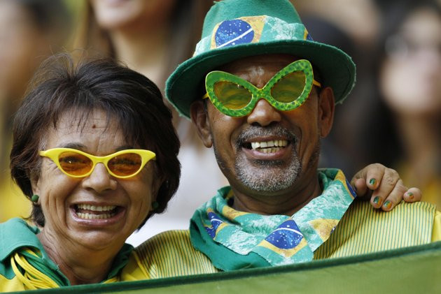 | CĐV Brazil tươi cười trước trận khai mạc Confederations Cup gặp Nhật Bản trên sân Estadio Nacional tại thủ đô Brasilia.. |