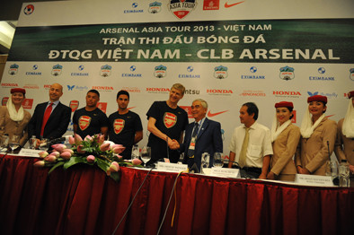TPO - Tham dự họp báo, bên phía Arsenal có HLV trưởng Arsene Wenger, Giám đốc điều hành Gazidis, tiền vệ Mikel Arteta, tiền đạo trẻ Chamberlain. Về phía BTC có Phó chủ tịch VFF Lê Hùng Dũng, chủ tịch HAGL Đoàn Nguyên Đức.