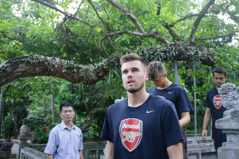 Sao Arsenal hứng thú dạo Hà Nội, thăm chùa Một Cột