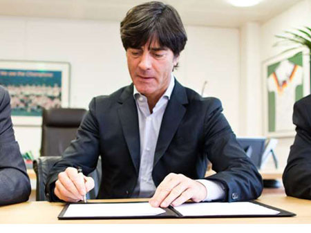 HLV Joachim Low vừa chính thức đặt bút vào bản hợp đồng có thời hạn hai năm với Hiệp hội bóng đá Đức (DFB). Với bản hợp đồng mới, chiến lược gia 53 tuổi này tiếp tục dẫn dắt tuyển Đức đến hết EURO 2016.
