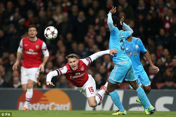 Phút 37, Ozil (11-Arsenal) đá hỏng phạt đền. Trước đó, Ramsey (16) đã bị N'Koulou (3-Marseille) phạm lỗi trong vòng cấm. Với pha phạm lỗi này, hậu vệ của đội bóng Pháp phải nhận thẻ vàng.