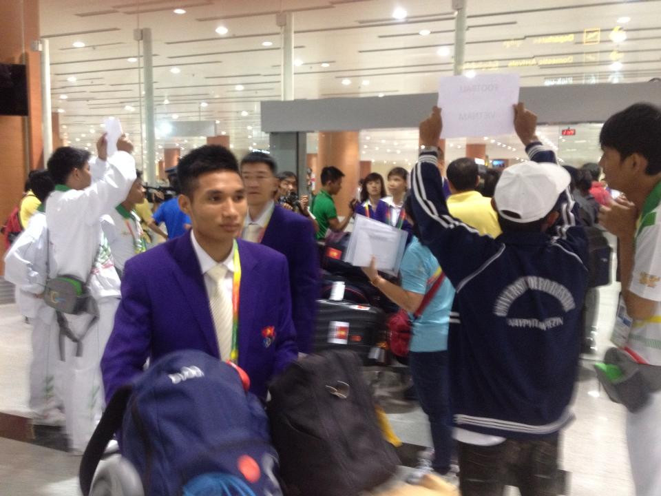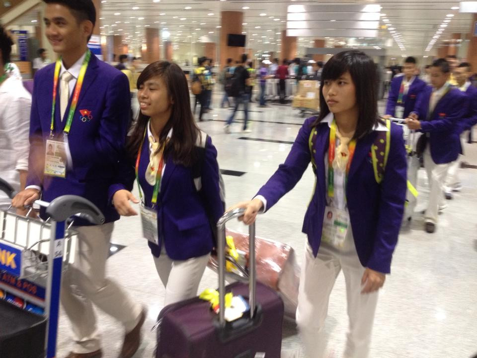 Đoàn Thể thao Việt Nam do Phó Tổng cục trưởng Tổng cục Thể dục Thể Lâm Quang Thành dẫn đầu đã đặt chân tới sân vay quốc tế Nay Pyi Taw. Trả lời phỏng vấn báo chí tại sân bay, ông Thành cho biết: “Do chỉ phải di chuyển 1h50 bằng chuyên cơ nên các thành viên đều rất khỏe khoắn với tâm trạng háo hức thi đấu giành những tấm huy chương về cho Tổ quốc”.