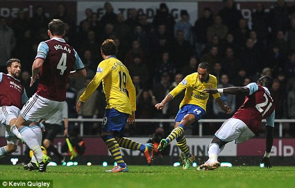 Vào! West Ham – Arsenal (1-2). Phút 70, từ cánh trái, Podolski (9-Arsenal) lật bóng vào cho Walcott đánh đầu căng. Bóng cắm thẳng vào khung thành West Ham trong sự bất lực của thủ thành Adrian, đưa Arsenal dẫn ngược 2-1.